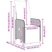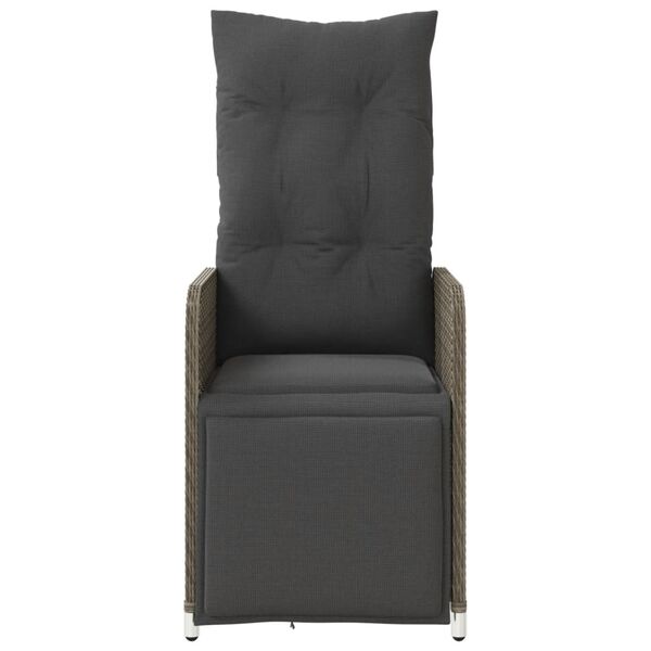 Relax and enjoy the outdoors in these comfortable reclining garden chairs! Durable material: PE rattan, also known as poly rattan, is a strong, low-maintenance synthetic material that looks like natural rattan. It's lightweight, easy to clean, and commonly used for outdoor furniture due to its durability and weather-resistant properties.Adjustable backrest and footrest: This garden seat has a handle. You can adjust the backrest and footrest to any position by pulling the handle, and quickly return them to their original positions.Comfortable seat experience: This outdoor furniture, complete with thickly padded cushions, offers a comfortable seating experience.Removable and washable cover: These seat cushions feature removable covers for easy washing and maintenance.Robust and stable frame: The powder-coated steel frame ensures the garden furniture is strong and stable for daily outdoor use. Good to know:To make sure your outdoor furniture stays beautiful, we recommend protecting it with a waterproof cover.