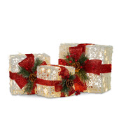 3 Piece Christmas Present Display Set with Lights & Red Bows