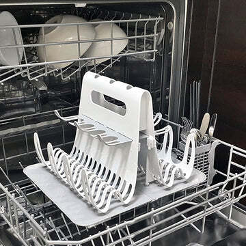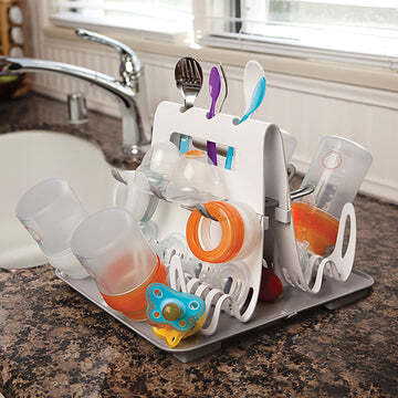 With Baby comes a lot of “stuff.” Too much stuff. We get it. All that stuff has to be kept in place to keep from getting misplaced. Every little spoon, nipple, bottle, pacifier, stopper, and lid... keep it together with a drying station that has a place for everything.