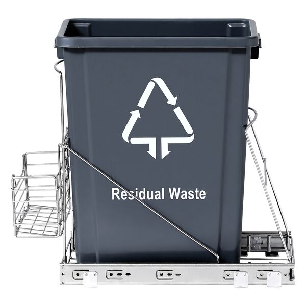 Crafted from chrome-plated iron wire, the durable frame is built to last and resists rust, while the open design allows for easy cleaning. The removable front basket adds extra convenience, offering dedicated storage for garbage bags or recyclables. By tucking the bins inside your cabinet, this system helps maintain a clean, clutter-free kitchen while containing odors for a fresher environment.