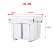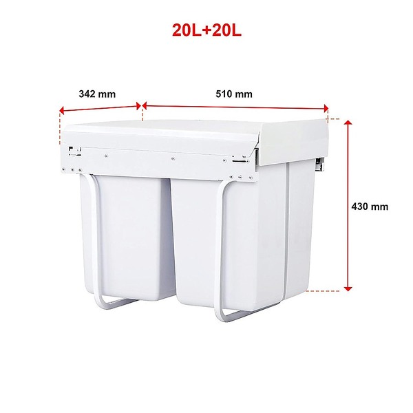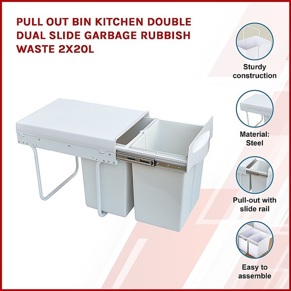 Pull Out Bin Kitchen Double Dual Slide Garbage Rubbish Waste 2X20L