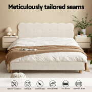 Queen Bed Frame Cloud Headboard Boucle Fabric Mattress Platform Base