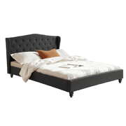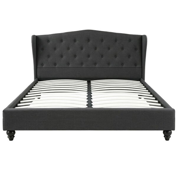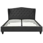 Queen Bed Frame Wingback Charcoal Grey Linen Upholstered Platform Bed Base