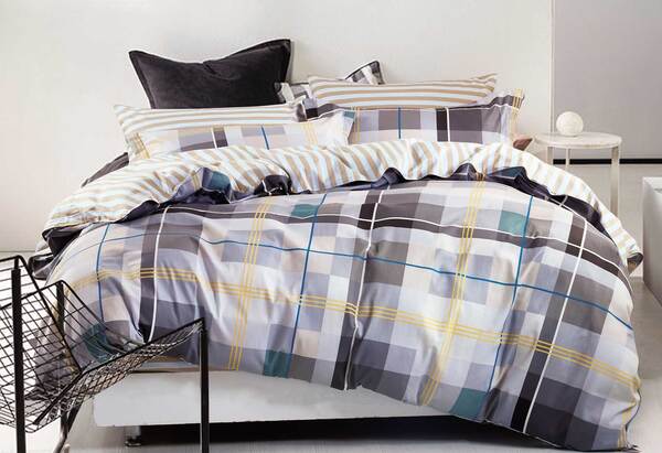 This quilt cover features a design of geo repeat of rectangles and strips. Made of ultra comfortable 100% cotton.