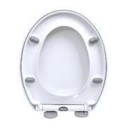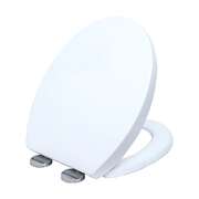 Crafted in a pleasing oval design, this white toilet seat will blend into the design scheme of any bathroom or powder room. Its tough Thermoset plastic construction ensures that it will last endure for longer, even with heavy use.