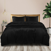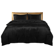 Silky Satin Quilt Cover Set Bedspread Black King Single