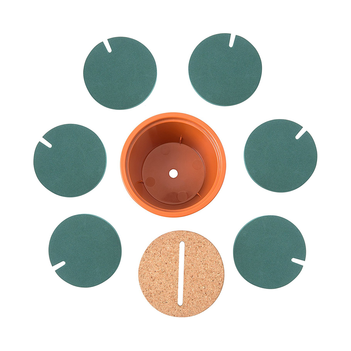 Set of 6 Green Cactus Design Anti-Skid Coasters with Plant Pot Display Stand