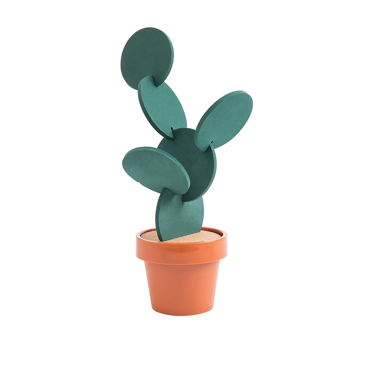 Quirky Designer Cactus Creative Coasters Set with Storage Display Stand Green