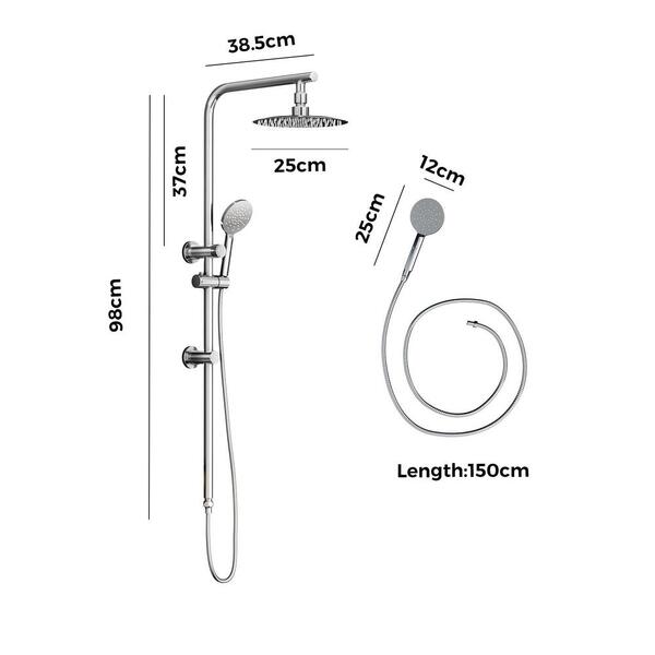 Overhead shower head size: 25cm x 25cm