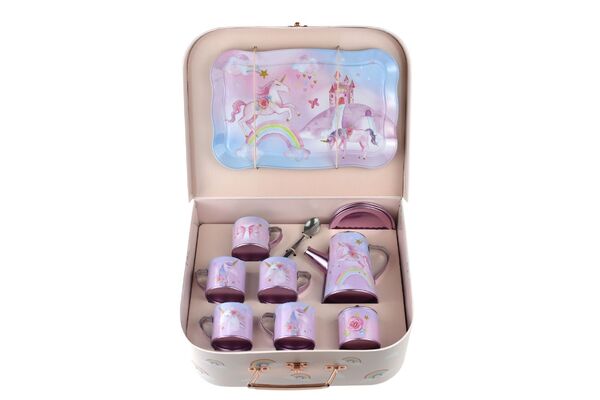 Rainbow Unicorn Tin Tea Mug Set In Suitcase 18Pcs