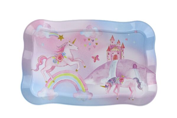 Introducing the enchanting 18-Piece Rainbow Unicorn Tin Tea Mug Set in its whimsical suitcase, a magical ensemble that brings the wonder of unicorns and rainbows to your child's imaginative tea parties! This delightful set features a stunning illustration of a majestic unicorn amidst vibrant rainbows, creating an atmosphere of enchantment and fantasy. Crafted to inspire delightful pretend play, this set is perfect for hosting fantastical tea gatherings with family, friends, or your child's beloved toys. It includes all the essentials for a magical tea affair: 4 charming tea mugs, 4 dainty plates, a lovely tea pot adorned with a lid, a sugar pot with its own lid, a delightful creamer, and additional enchanting accessories, all neatly packaged in a captivating suitcase. Created by Kaper Kidz, this tin tea set isn't just a toy; it's a gateway to creativity and social interaction. Encourage your child to curate their own magical tea parties, fostering moments of joy and imagination. However, please note that while this tea set resembles real tea service items, it's designed for play and is not suitable for containing hot liquids or food. Watch as the 18-Piece Rainbow Unicorn Tin Tea Mug Set becomes a centerpiece of delightful make-believe, inspiring your child to embark on whimsical journeys filled with laughter, storytelling, and endless enchantment in their own imaginative world!