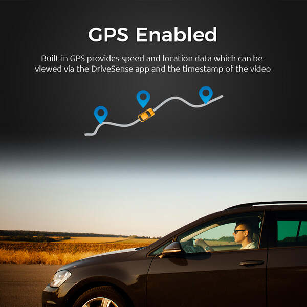 Built-in GPS provides speed and location data which can be viewed via the DriveSense app and the timestamp of the video