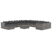 Grey Rattan Elegance: 12-Piece Garden Lounge Set with Plush Cushions