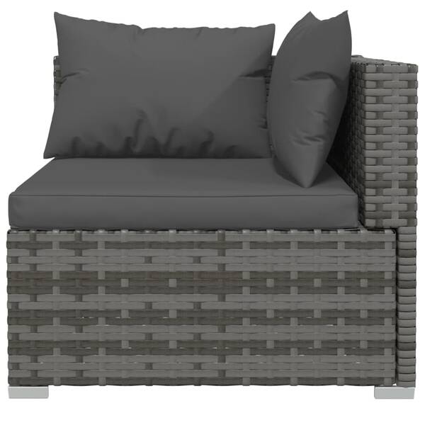 Relax and enjoy outdoor space with your family and friends on our classic poly rattan garden lounge set with cushions! Premium material: The patio lounge set is designed with weather-resistant and water-resistant PE rattan, making it easy to clean, hard-wearing and suitable for daily outdoor use.Sturdy frame: This outdoor lounge set is made with a sturdy powder-coated steel frame and plastic chrome feet that provides durability.Comfortable cushions: The thickly padded and removable cushions are made of fabric, soft to touch and bring you extra comfort.Modular design: This rattan lounge set is modular and lightweight. It is also flexible to place the set in any arrangement or combine it with other modular segments to meet your needs.Note:In order to extend the life of your outdoor furniture, we recommend you clean it regularly and do not leave it outdoors without protection unnecessarily.Clean: Use a mild soap solution.Storing: If possible, store in a cool, dry place indoors. If the product is stored outdoors, protect it with a waterproof cover. Wipe and dry the excess water or snow from flat surfaces after a rain or snowfall. Allow sufficient air circulation to avoid moisture-related damage.