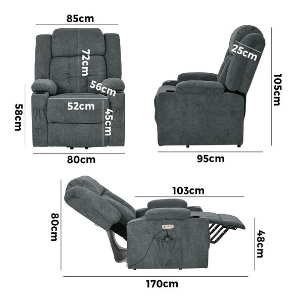 Recliner Chair Lift Heated Massage Armchair with USB Charging Ports