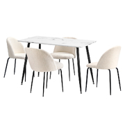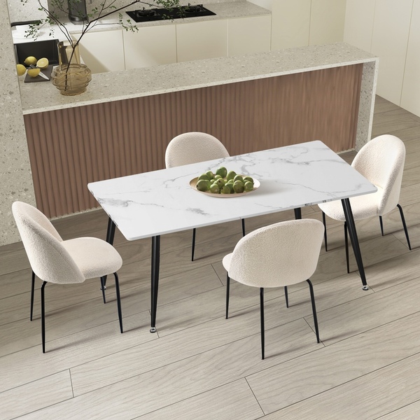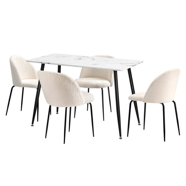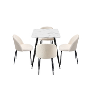120cm Rectangle Dining Table with 4PCS Dining Chairs Sherpa White