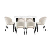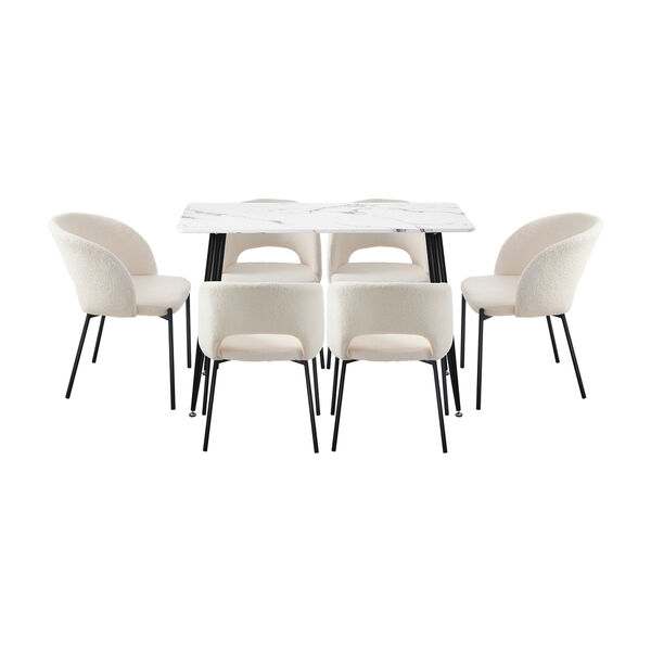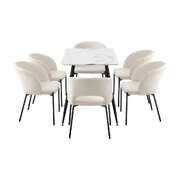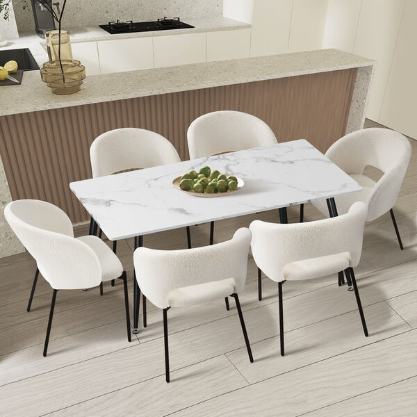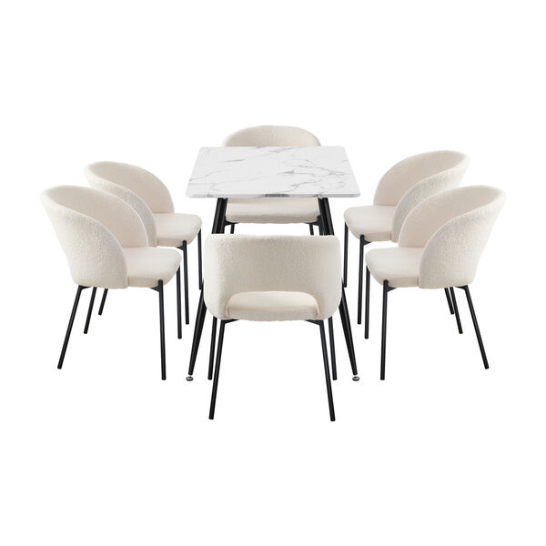 Rectangle Dining Table with 6PCS Sherpa White Chairs for Kitchen Room