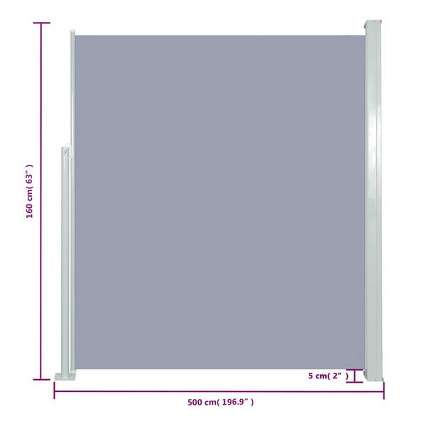 Our garden side awning, featuring a large screen, presents an effective way to deal with a constant wind and low-lying sun, while providing privacy. The simple yet stylish design makes it an ideal complement for your garden, patio, balcony, etc. Our retractable side awning has an automatic roll-back function and the width is adjustable to up to 500 cm. The outdoor screen is made of UV-proof, tear-resistant and water-resistant polyester. Delivery also includes mounting accessories.