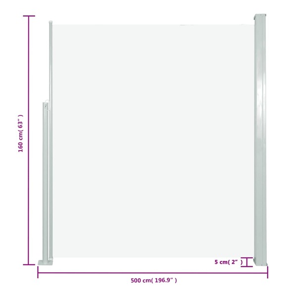 Our garden side awning, featuring a large screen, presents an effective way to deal with a constant wind and low-lying sun, while providing privacy. The simple yet stylish design makes it an ideal complement for your garden, patio, balcony, etc. Our retractable side awning has an automatic roll-back function and the width is adjustable to up to 500 cm. The outdoor screen is made of UV-proof, tear-resistant and water-resistant polyester. Delivery also includes mounting accessories.