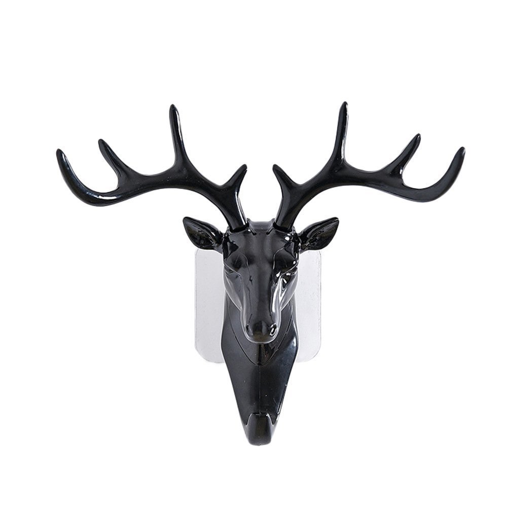 Retro Antler Home Decor Vintage Deer Head Wall Hook Clothes Hanger Rack - Black