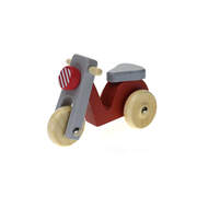 Trendy, retro styled, wooden motor scooter. Easy for small hands to hold. Perfect for zipping about the city streets. Beautiful to look at and strong enough to play with too. Available in red or blue.