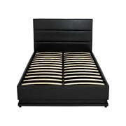 King Single LED Gas Lift Bed Frame Black Modern Storage Bedroom