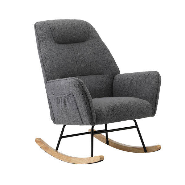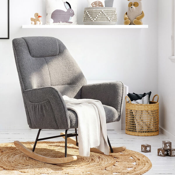 Rocking Chair Armchair Sherpa Accent Upholstered Grey Living Room Seat