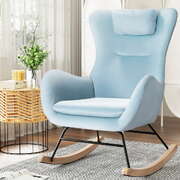 Rocking Chair Velvet Armchair Feeding Chair Blue