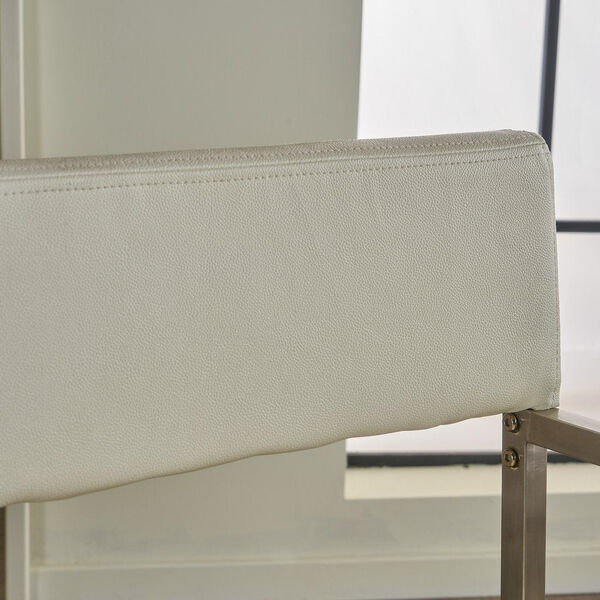 The Rocklin White Leather Armchair provides modern style with simple comfort. White Bonded leather and stainless steel frame make it ideal for any modern interior.