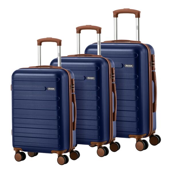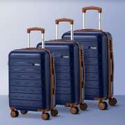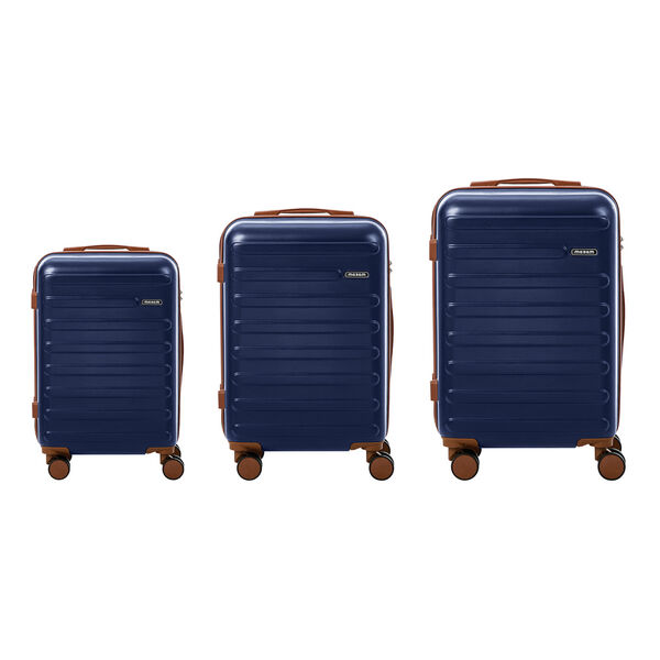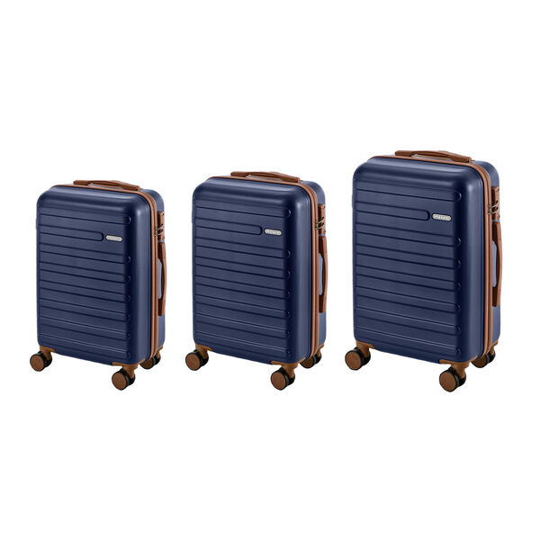 Rolling Travel Suitcase Luggage Trio Explorer Range ABS Hardshell 20 24 28 Inch Navy 3 Piece