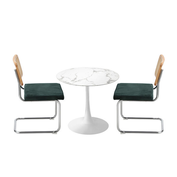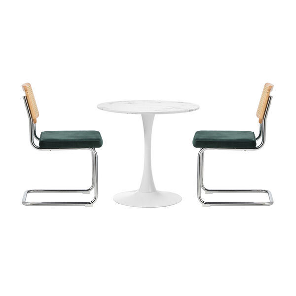60cm Round Dining Table with 2PCS Dining Chairs Velvet Green
