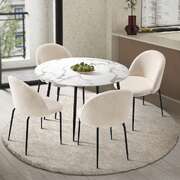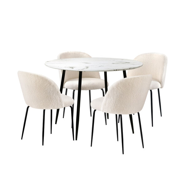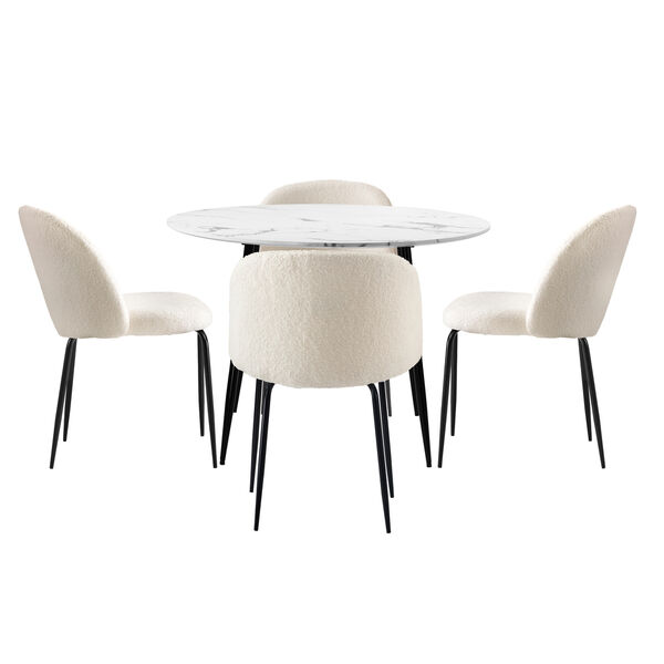 Round Dining Table & 4PCS Dining Chairs White Sherpa