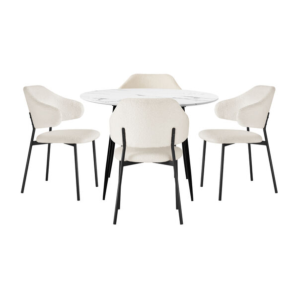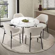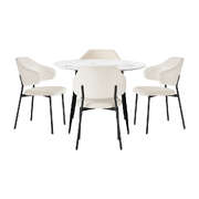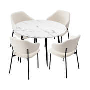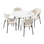 Round Dining Table with 4PCS Chairs Sherpa White
