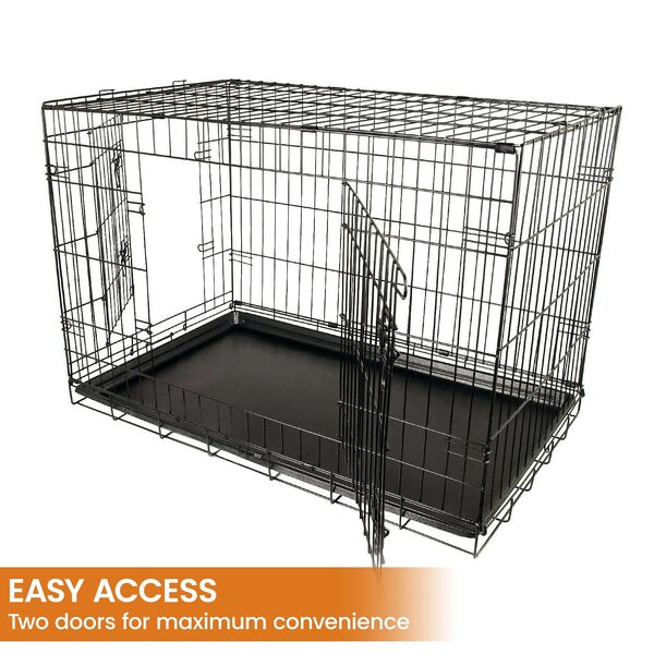 Versatile, foldable, and easy to use, the Royale dog crate is a must-have for every pet owner. It features two latched doors for easy access and a removable tray for hassle-free cleaning.