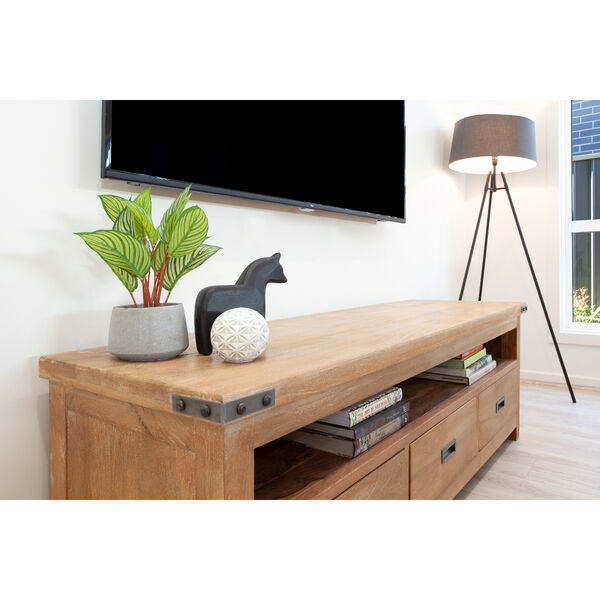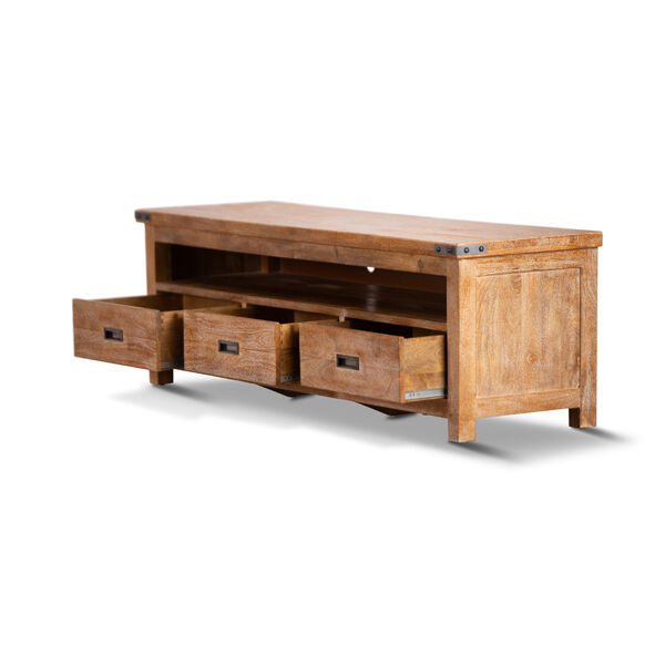 Etu Entertainment Tv Unit 170Cm 3 Drawer Solid Mango Wood - Honey Wash
