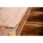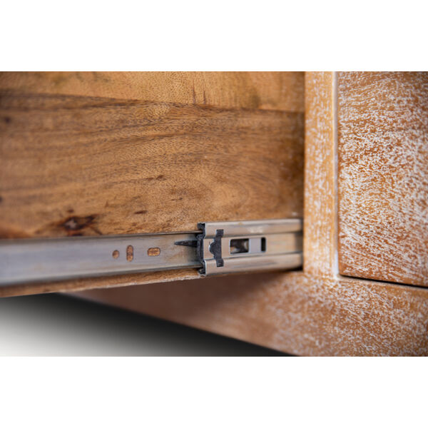 The true beauty of a living room is its entertainment unit. Get yourself a beautiful TV unit and realize this. This slim design TV unit, designed in the French provincial style, with 3 drawers and 1 large niche with 2 cable holes, will make your living area vivid. This delightful furniture piece features sustainably harvested Mango wood with a unique grain pattern and naturally occurring grains and knots. They give it an exceptional look. The wood is known for its beauty, low maintenance, and high durability. The honey wash TV unit has been 'sandblasted' for an even better look and a slick finish. A one-year warranty is included with the fully assembled TV unit.