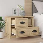 This bedside cabinet with an elegant design makes a timeless addition to your interior decor. Durable material: The engineered wood is of exceptional quality with smooth surface and also features strength, stability and resistance to moisture. Ample storage space: The bedside table is designed with a compartment and 2 drawers to keep things organised and within easy reach. Stable and sturdy table top: The top of the side cabinet is perfect for displaying your decorative items, picture frames and potted plants. Good to know:To make assembly as easy as possible, each product is delivered with a manual.