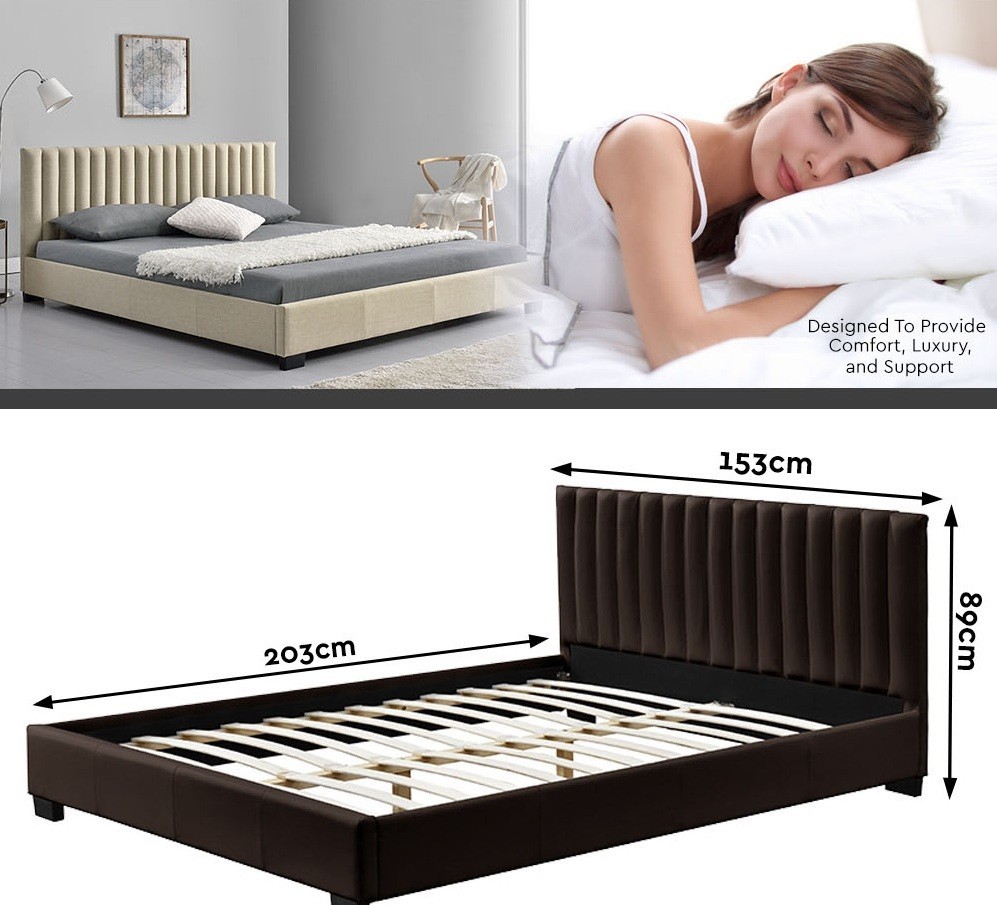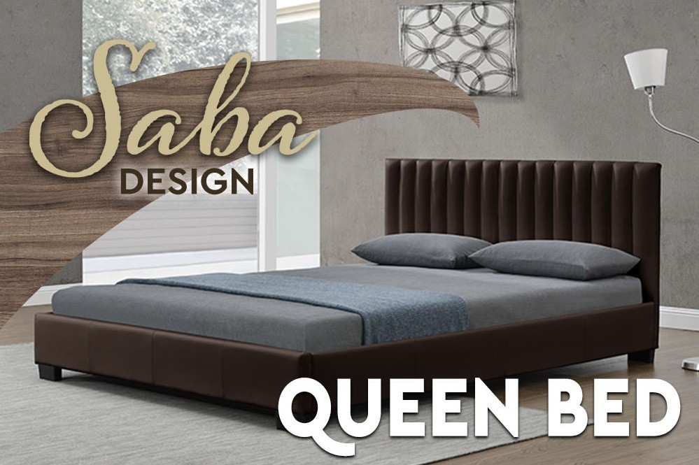 Saba Queen Size Matt PU Leather Bed Brown 152 x 203cm