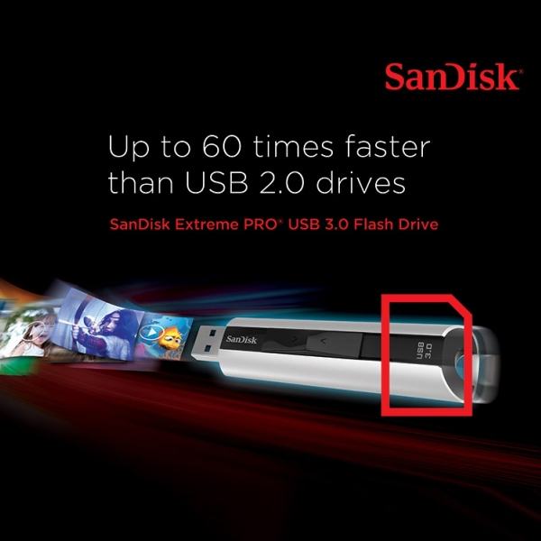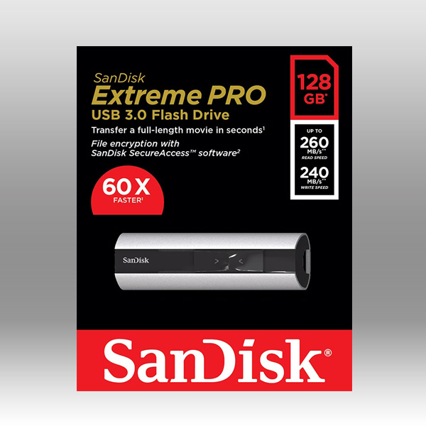 Share and transfer large media files without the wait with the SanDisk Extreme PRO USB 3.0 Flash Drive. This USB 3.0 drive offers an ample 128GB of storage and lets you transfer photos, movies, and other files up to 60 times faster than standard USB 2.0 drives. As a result, you can take your media collection with you and quickly share it with friends and family. A stylish aluminium metal casing guards against daily wear, while SanDisk SecureAccess software helps keep your data safe.