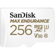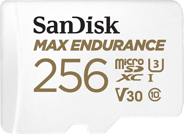 Built to capture up to 15,000 hours(1) of footage for your home security cameras or dash cam, the SanDisk MAX ENDURANCE microSD card is engineered not only for continuous recording and re-recording, but also for continuous peace of mind. Designed to last(1), this microSD card can withstand a variety of extreme weather conditions because its temperatureproof, waterproof, shockproof, and X-ray proof.(2) With capacities of up to 256GB*, you can record and store more Full HD or 4K videos(3). And, with read speeds up to 100MB/s(5), youll be able to spend less time transferring and backing up video footage, and more time living life. | *1GB = 1,000,000,000 bytes. Actual user storage less. | (1)Actual hours of video saved less. Up to 120,000 hours/over 13 years for 256GB; 60,000 hours for 128GB; 30,000 hours for 64GB; and 15,000 hours for 32GB. Full HD video only; total hours less for 4K UHD video. | (2)Card only. See product packaging and visit the SanDisk proof website for more information and limitations. | (3)Compatible device required. Full HD (1920x1080) and/or 4K UHD (3840x2160) video support may vary based on host device, file attributes, usage conditions and other factors. Visit the official SanDisk Video Knowledge Base website for more | (4)UHS Speed Class 3 (U3) and UHS Speed Class 1 (U1) designate performance options designed to support real-time video recordingwith UHS-enabled host devices. Video Speed Class 30 (V30), sustained video capture rate of 30MB/s, designates a performance option designed to support real-time video recording with UHS-enabled host devices. Visit the SD Association website for speed class details information. | (5)Up to 100MB/s read speed, up to 40MB/s write speed. Based on internal testing; performance may be lower depending on host device, usage conditions and other factors. 1MB=1,000,000 bytes.