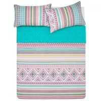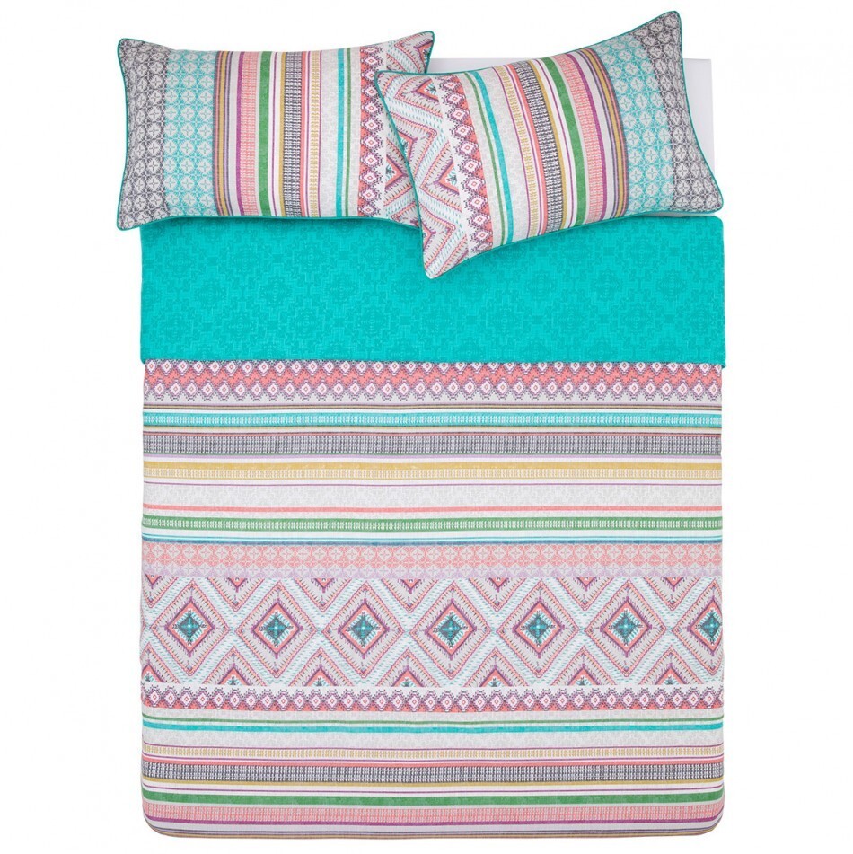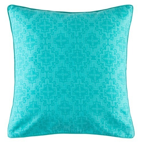 Treat your sanctuary to a lively refresh with the eye-catching Aztec-inspired design of the Selena quilt cover. Intricate patterns are layered onto textural slub cotton in a summer-loving palette of vivid teals and spice tones. Bordered with contrast piping, the beautifully patterned reverse, rendered in jewel teal, adds the finishing touch.