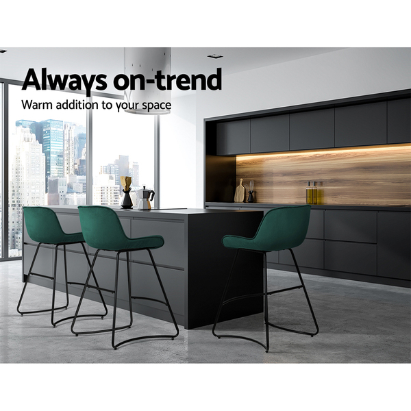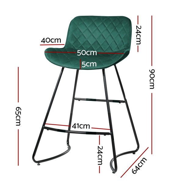 Set Of 2 Bar Stools Kitchen Stool Chairs Chair Velvet Barstool Barstools Green