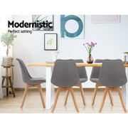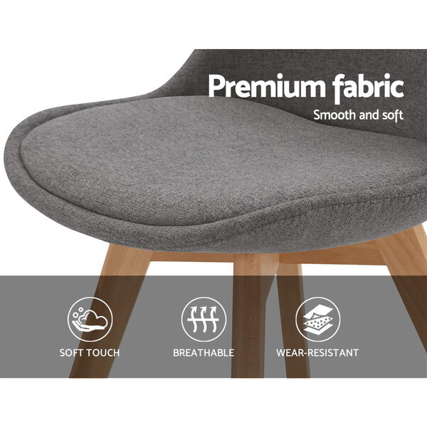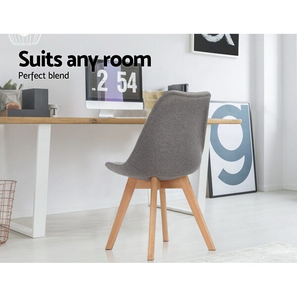 set of DSW Dining Chair serves the purpose of providing seating comfort with a beautiful design. The simple structure is built with a PP Plastic padded seat with thick foam and fabric covering, also supported by a set of strong beech wooden legs. These beautifully simple design dining chairs can be easily match with any decor in your home.