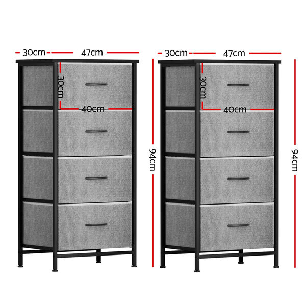 Set of 2 Chest of 4 Drawers Storage Dresser Tallboy Grey - Elegant