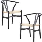 Set Of 2 Wishbone Dining Chair Beech Timber Replica Hans Wenger - Black