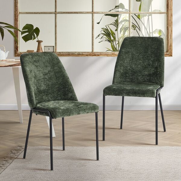 Set of 2 Dining Chairs Chenille Fabric Upholstered Padded Seat Green