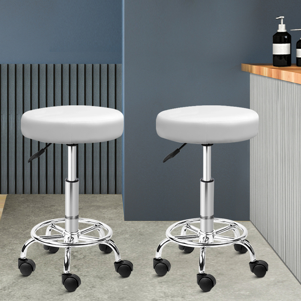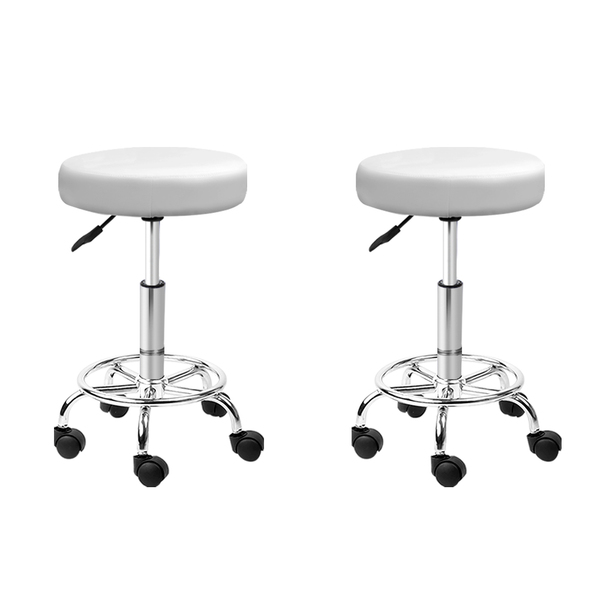 Set of 2 Round Salon Stool White Swivel Barber Beauty Chair