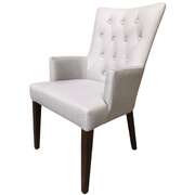 The journey to a comfortable dining experience begins with this 3-piece set of carver dining chairs. Bring home this beautiful dining chair with arms that promises both comfort and strength with its button-tufted seat, fabric upholstery, tapered legs, and a strong structural frame of sustainably harvested rubber wood. Decorate your dining area with these chairs in a light grey colour with antique walnut legs and enjoy the beauty of the dining area setting. The dining chairs are designed in the French Provincial style and provide comfortable back and lumbar support. Because of their gorgeous looks and designer stitching on the upholstery, they are a beautiful addition to your living area. And thanks to their homely shape, they look stunning in all decor settings and can be paired with a dining table of any style. A one-year warranty is included with the fully assembled dining chairs.