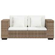 This rattan sofa combines style and functionality, and will make a great addition to your home. Thanks to the high-quality genuine rattan material, the sofa is easy to clean, hardwearing and suitable for daily use. It features a sturdy wooden frame, which is highly durable and stable. The thick seat and back cushions and pillows are very conformable and washable thanks to their removable covers. In addition, the wide armrests add to your seating comfort. Delivery includes one 2-seater sofa, two seat cushions, two back cushions and two pillows.