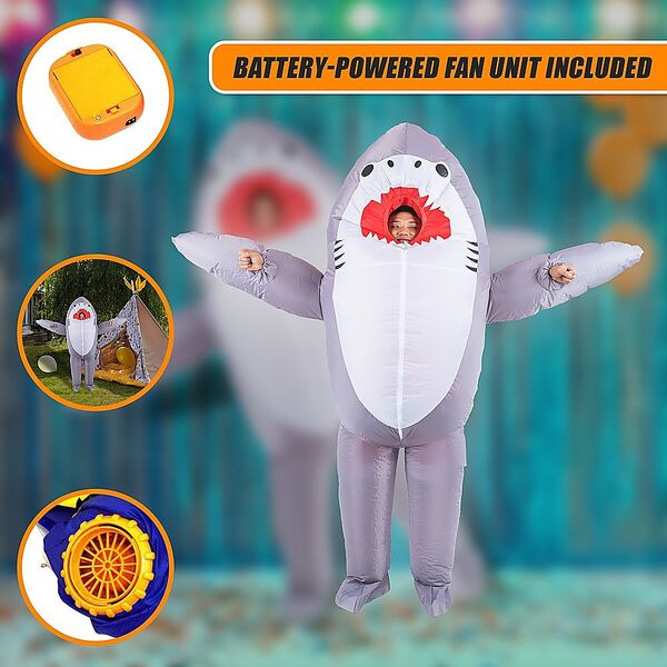 This shark costume is a great idea for Halloween or summer costume parties. The fan not only keeps the shark inflated, but it also keeps you cool in the process. Use it for promotional events at car dealerships, seafood restaurants, or sales on fishing gear, boating tours, or special aquarium exhibitions to draw in customers and attendees.